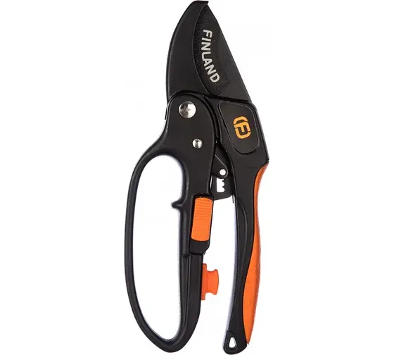 Секатор с храповым механизмом Центроинструмент FINLAND 1611 оснащается встроенной масленкой, которая позволяет успешно работать с сухой древесиной. На одной из рукояток располагается эфес для защиты ладони. Храповый механизм снижает усилие.