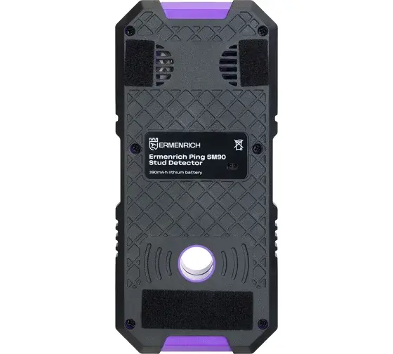 Ermenrich Ping SM90 – многофункциональное устройство для обнаружения скрытых проводов под напряжением, труб, деревянных и металлических конструкций, а также для измерения длины и уровня. Детектор показывает наличие проводов на глубине до 55 мм, конструкций на глубине до 38 мм. Черные металлы обнаруживаются не глубже 100 мм, цветные – 120 мм. Тестер можно использовать как для домашнего ремонта, так и для профессиональных строительно-монтажных работ.
