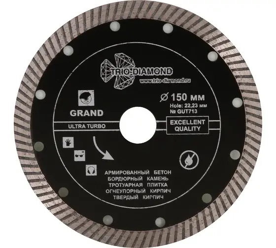 Диск алмазный отрезной Турбо Grand hot press (150х22.23 мм) TRIO-DIAMOND GUT713