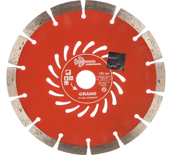 Диск алмазный отрезной Сегментный Grand hot press (180х22.23 мм) TRIO-DIAMOND GUS724