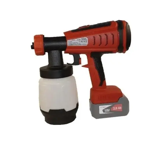 Бесщеточный аккумуляторный краскораспылитель КР-18Л3 представляет собой ручную систему распыления краски для покраски небольших и средних помещений и адаптирован для использования с содержащих растворители и разбавляемых водой эмалей, глазурей, грунтовок, бесцветных лаков, защитных автомобильных лаков, красителей и средств для защиты древесины.
