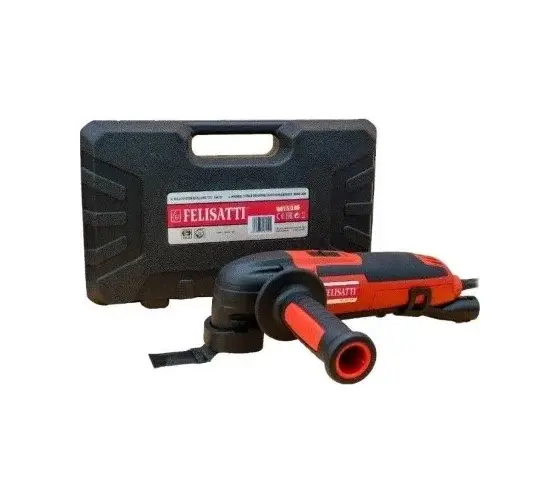 Felisatti МФИ-300 681.5.0.00 — полупрофессиональный инструмент с мощностью 300 Вт. Оснащен щеточным двигателем и поддерживает электронную регулировку оборотов. Тип соединения — OIS. В комплекте три насадки, кабель длиной 2,5 м. Виброручка отсутствует, быстросъемное крепление и подсветка не предусмотрены. Инструмент поставляется в кейсе. Частота колебаний — 15000-23000 кол/мин. Работает от сети, весит 1,45 кг. Есть возможность подключения к пылесосу. Плавный пуск и поддержание оборотов под нагрузкой не предусмотрены.
