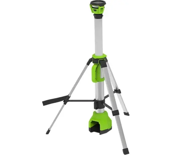 Аккумуляторная светодиодная осветительная мачта 2-в-1 Greenworks 24V 3401107 - светодиодная мачта из серии 24V для освещения больших рабочих мест. Имеет световой поток 1500 лм в режиме фонаря, 500 лм в режиме прожектора. Регулируется по высоте.