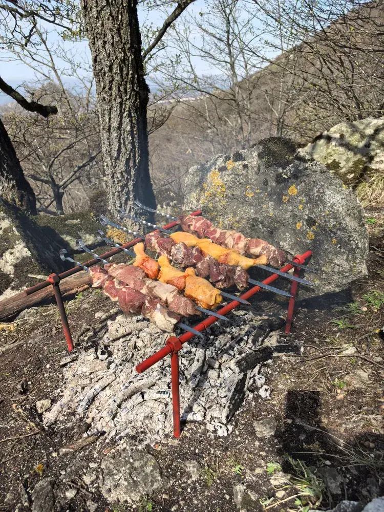 Диаметр прута 14 мм. Удобно собирать/разбирать. Не деформируется. Специальные вырезы под стандартные шампура - для лучшей прожарки. Высоту над углями можно изменить в любой момент, просто вбив "ноги" глубже в землю. Покрытие - порошковая термостойкая краска, которая выдерживает температуру до 600°С. Гарантия на сварные детали 5 лет. Гарантия от сквозной коррозии и деформации - 10 лет. Чехол выполнен из качественного износостойкого материала (шампура не порвут). Легко моется, чистится. Вес - 3.600 грамм. Перчатки в "подарок".
