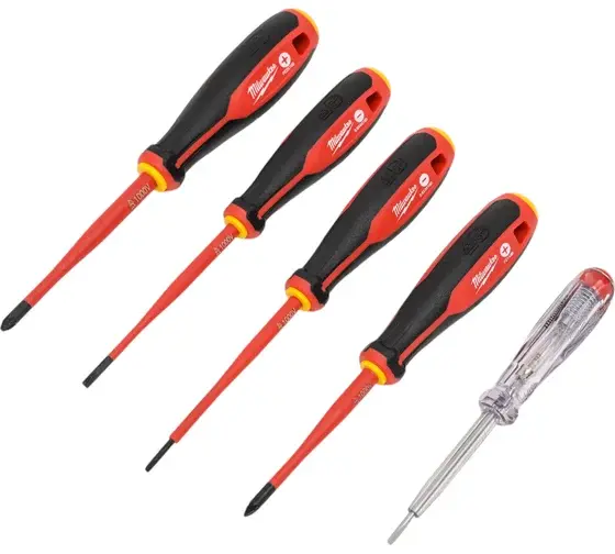 Набор трехгранных отверток Milwaukee VDE PZ/SL + тестер напряжения - 5 ед. 4932478737 позволяет работать практически с любой электроникой. Удобные рукоятки не скользят и не проворачиваются. Это позволяет эффективно вращать тугой крепеж.