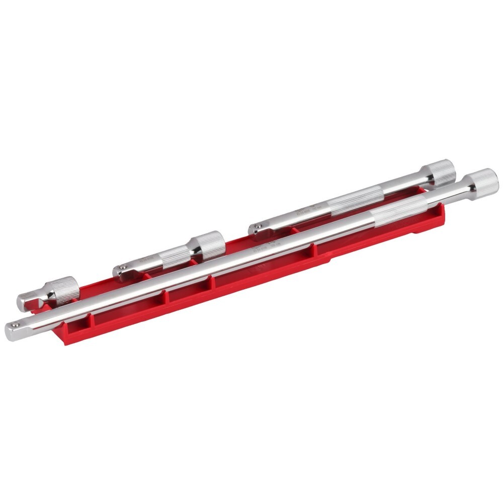 Набор удлинителей 3/8" (4 предм.) Milwaukee DRIVE EXTENSION SET состоит из четырёх удлинителей диаметром 3/8 дюйма. Накатка на валу и внутреннем конце обеспечивает надёжный захват и точность при нарезании резьбы вручную. Размеры легко определить благодаря лазерной гравировке. Прочное и компактное хранилище экономит место в инструментарии. Хромированное покрытие предохраняет от коррозии.