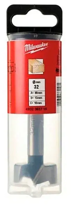 Сверло Forstner Milwaukee 4932363715 32х90мм, предназначено для тяжелых работ сверления в любом виде дерева твёрдых и мягких пород, ЛДСП, МДФ, ДВП и ламинате. Центральная точка засверливания служит для прецизионного сверления, внешние резцы сверлят без сколов. Изготовлены в соответствии с DIN 74836.