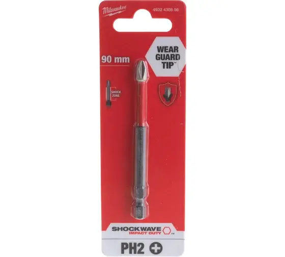 Насадка SHOCKWAVE Milwaukee 4932430856 предназначена для работы с ударными шуруповертами и гайковертами при монтаже/демонтаже крепежа имеющего шлиц PH2. Изготавливается из запатентованного сплава Impact duty. Компрессионный кованый наконечник обеспечивает отличную посадку в головке винта.