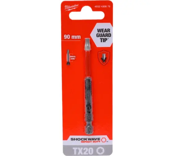 Насадка SHOCKWAVE Milwaukee 4932430878 предназначена для работы с ударными шуруповертами и гайковертами при монтаже/демонтаже крепежа имеющего шлиц TX20. Изготавливается из запатентованного сплава Impact duty. Компрессионный кованый наконечник обеспечивает отличную посадку в головке винта.