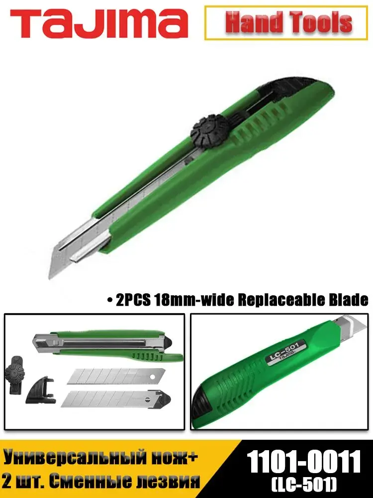 Нож TAJIMA LC-501 — выдвижной нож с винтовым стопором и тремя сегментированными лезвиями в наборе.