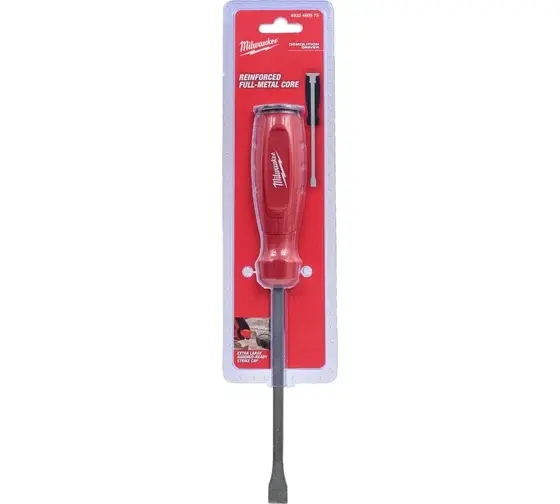 Отвертка-долото изготовлена из закаленного цельнометаллического стержня, что обеспечивает ей максимальную прочность. Рукоятка оснащена несколькими ударопрочными наконечниками, позволяющими работать с большей силой при ломе и ковке. Пробивной наконечник предназначен для прокалывания листового металла.