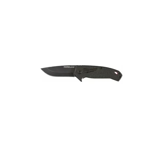 Milwaukee Hardline Smooth — складной нож из прочной стали D2. Рукоять изготовлена из стеклонаполненного полиамида, клинок заточен прямым методом. Длина лезвия — 75 мм. Чехол не предусмотрен, рукоять черного цвета, есть клипса для ношения.